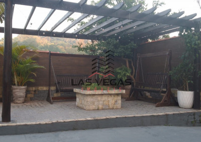 Dois jardins com pergolado